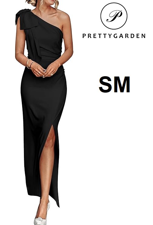 WOMENS PRETTY GARDEN ONE SHOULDER LONG FORMAL DRESS WITH SLIT - SMALL - BLACK