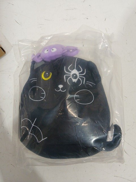 Halloween themed stuffed cat plushie with spider - 8" - Black