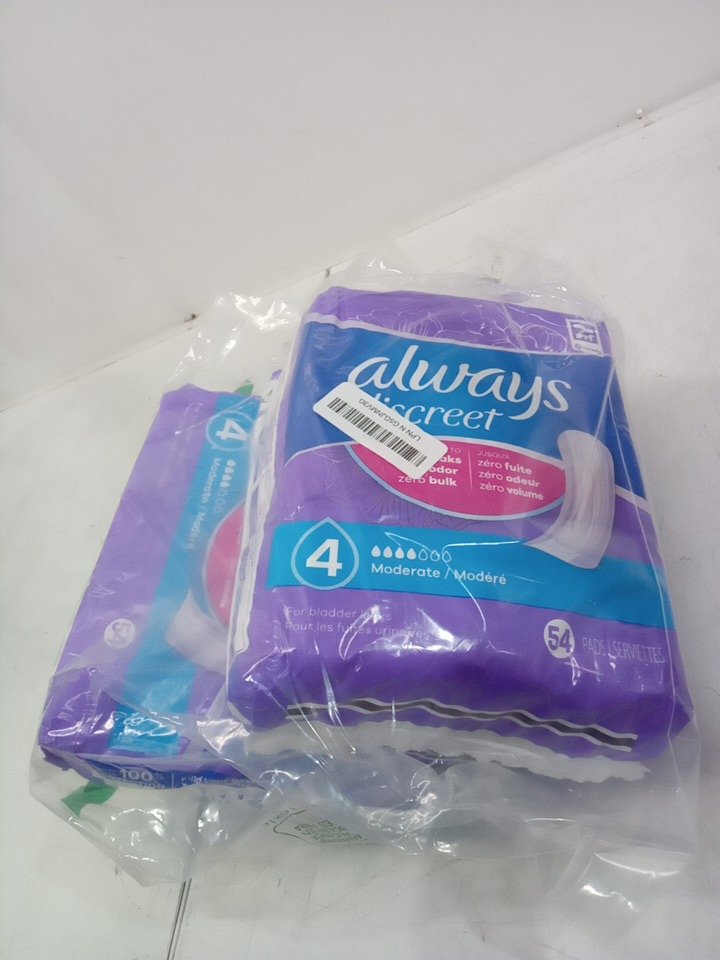 (X2) 54PK WOMENS Always Discreet Incontinence Pads - MODERATE - (MODEL:PG-6854)