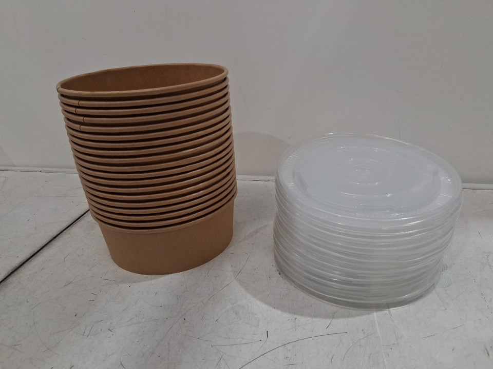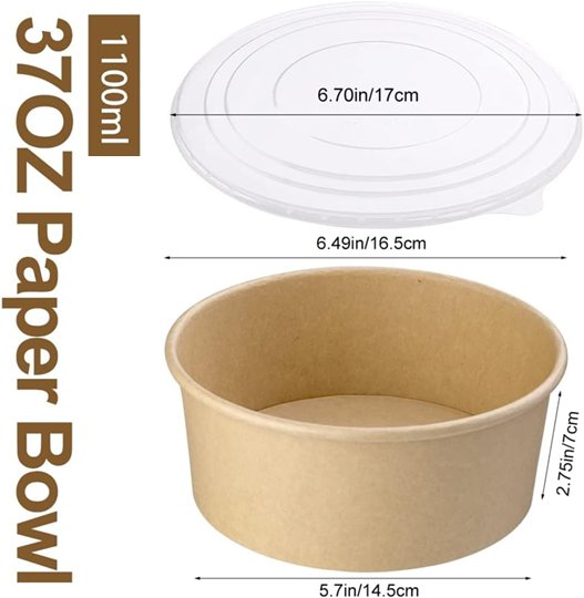 38PC disposable salad bowl food containers with clear lids - 37oz - Brown/Clear (