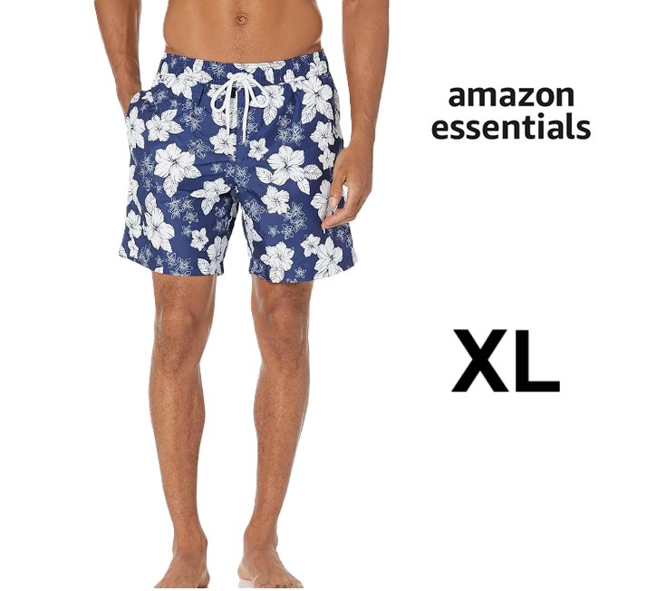 men's amazon essentials 7" Swim Trunk - XL - blue Hibiscus Print (style: ae1671278)