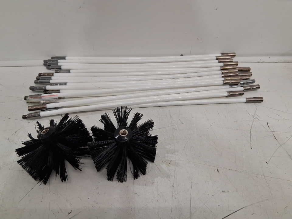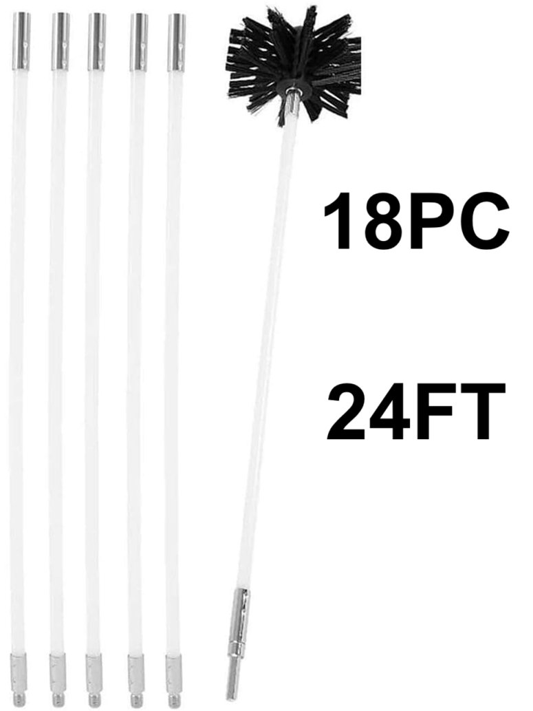 18PC Adjustable Chimney Sweep Cleaning Brush For Fireplace/Dryer Vent/Fume WIth 2 Brushes- 24FT - White/Black