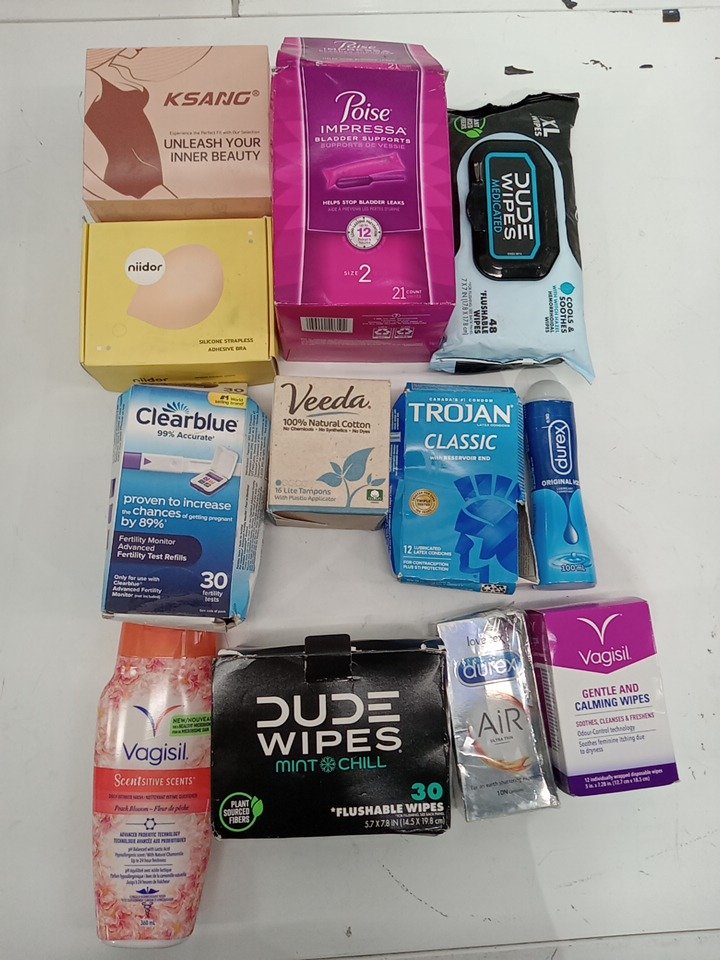 12 assorted intimate & hygiene products - assorted brands / sizes