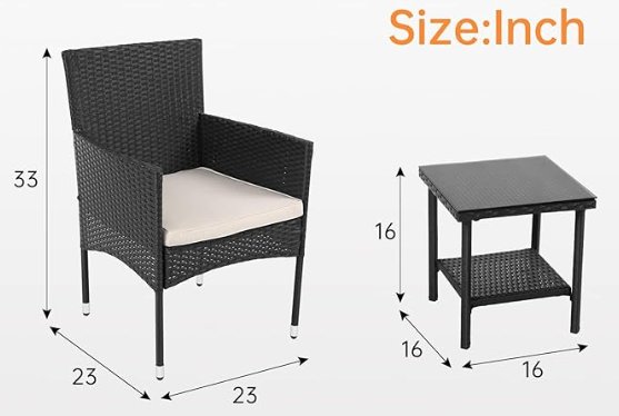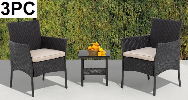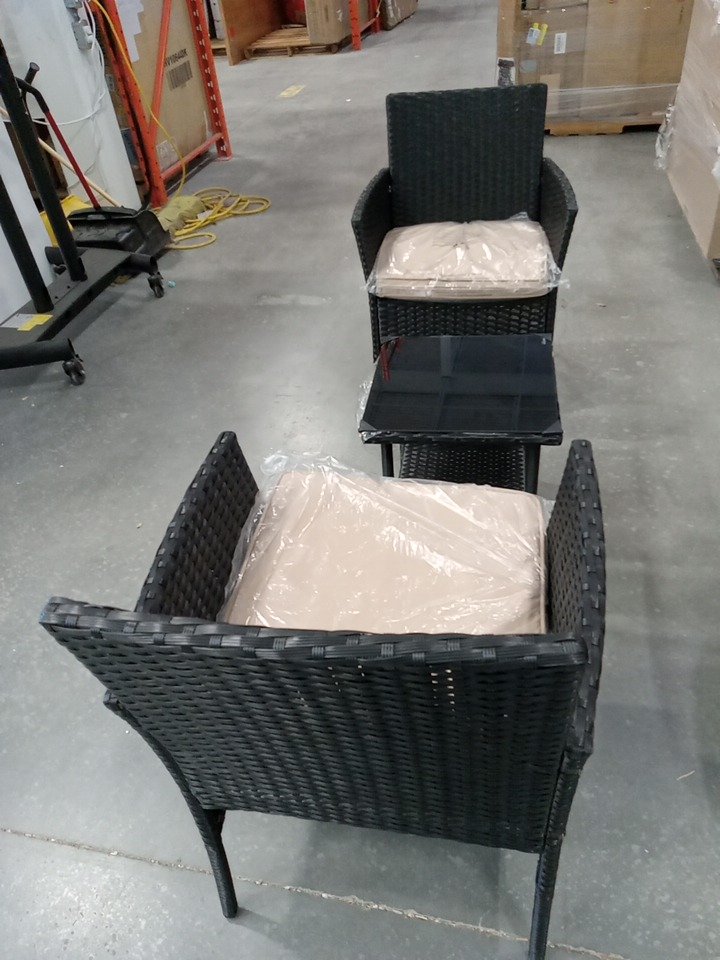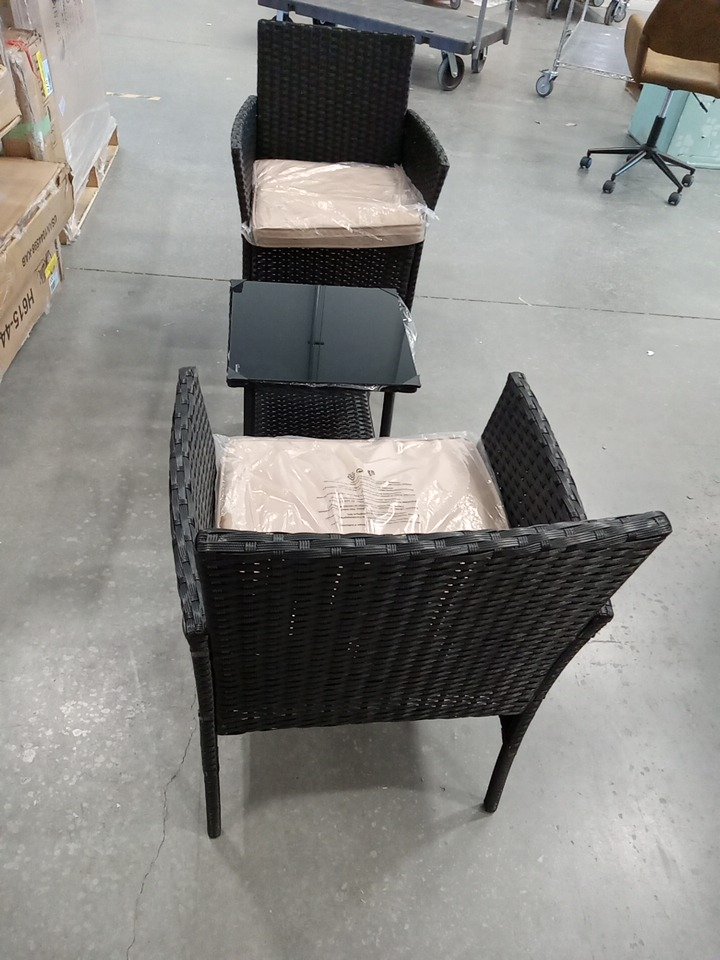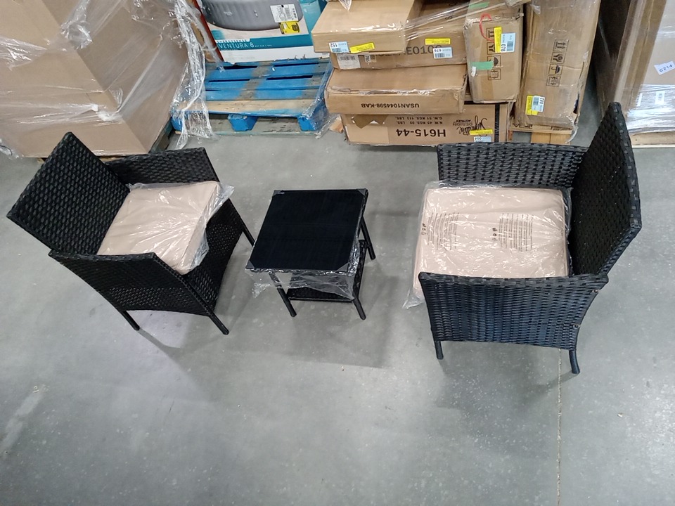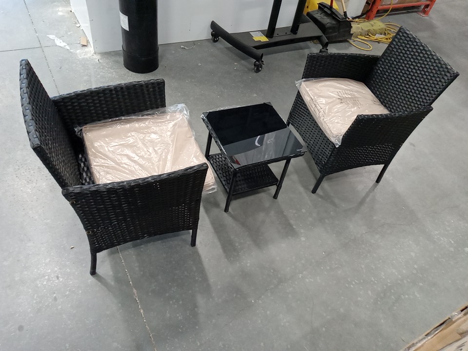 3PC RUESLEAG Outdoor Wicker Conversation Set With Bistro Table - BLACK (MODEL: MC-977)
