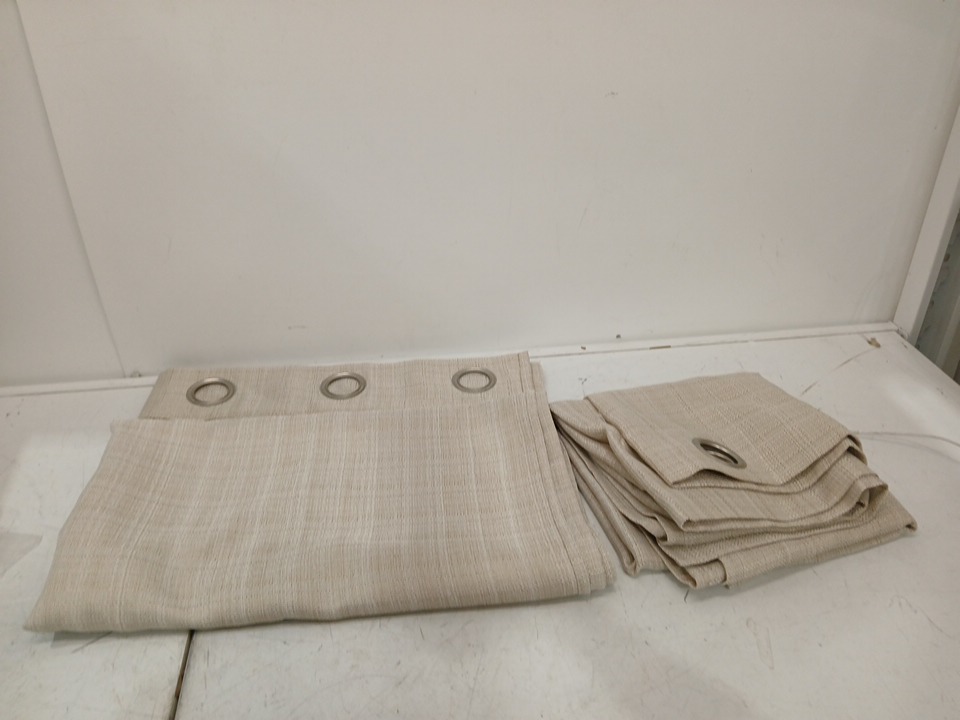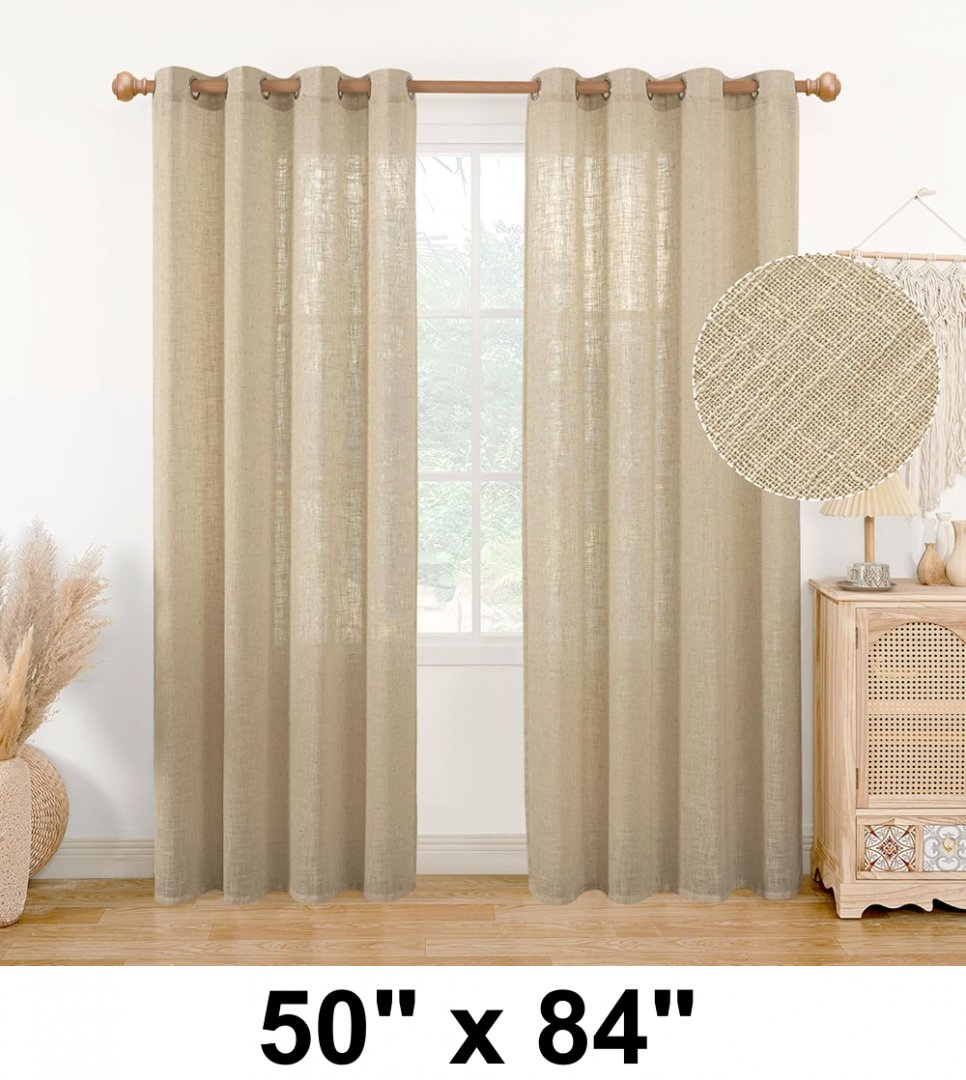 (2 panel set) Linen style Textured Light Filtering Semi Sheer Window Curtain panels 50" x 84" - light brown