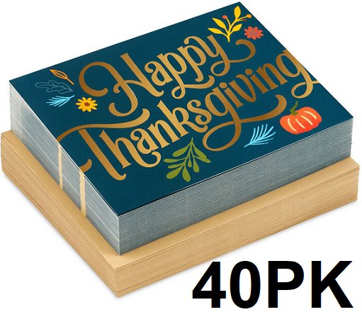 40pk HALLMARK blank 'happy thanksgiving' cards with envelope - blue/gold