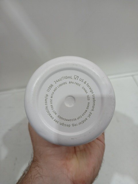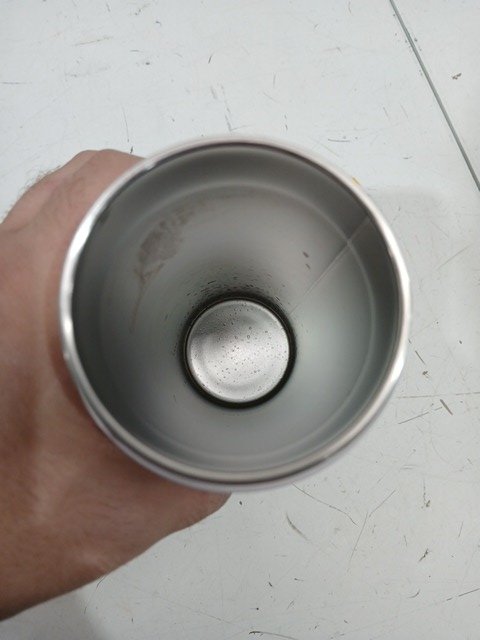 There are some scuff marks on the outside, minor dents on the bottom and liquid stains inside of the bottle.