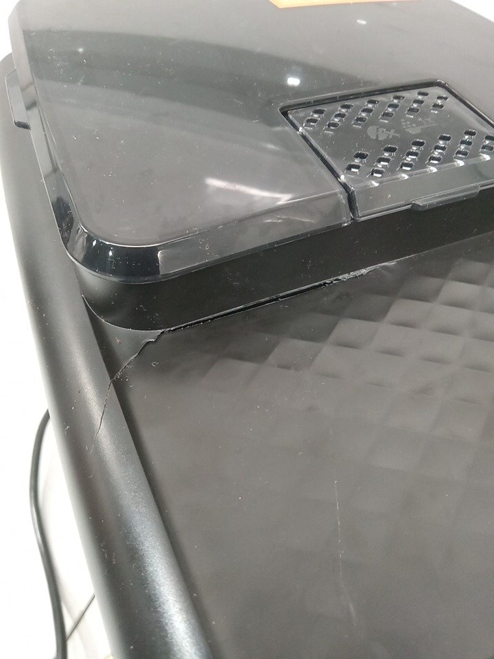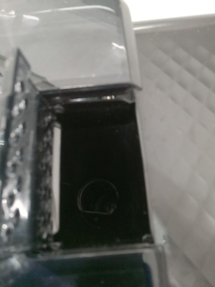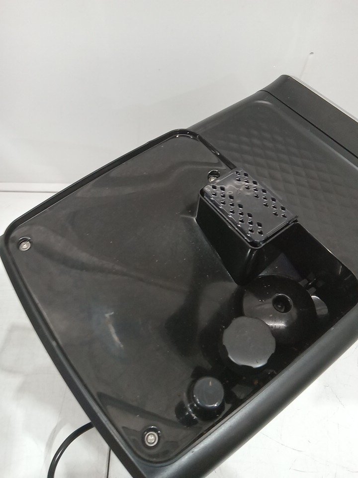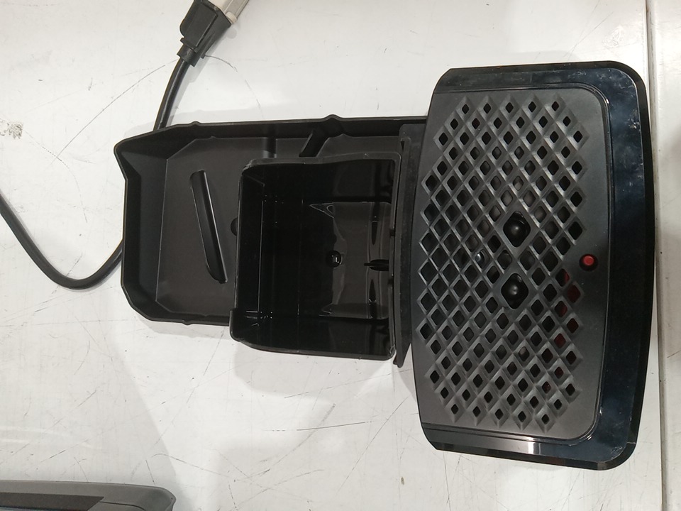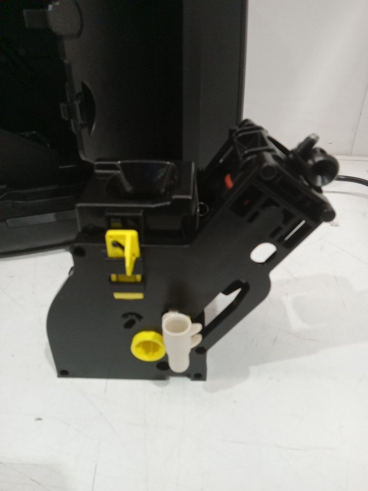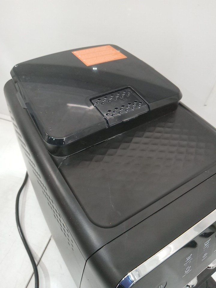 A crack is present near the grinder area on the top frame and may develop in the future. Please note that all of the cleaning accessories, the scoop are missing from the original packaging. There are minor coffee residue on the grinder and there are water stains on the water tank from previous use. There are minor scratch marks on the sides. The AQUA filter is recommended to be replaced. Tested for basic power only. (Please see photos)