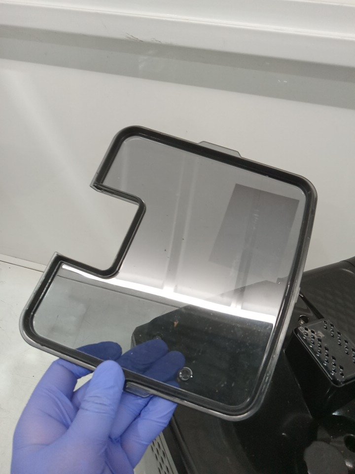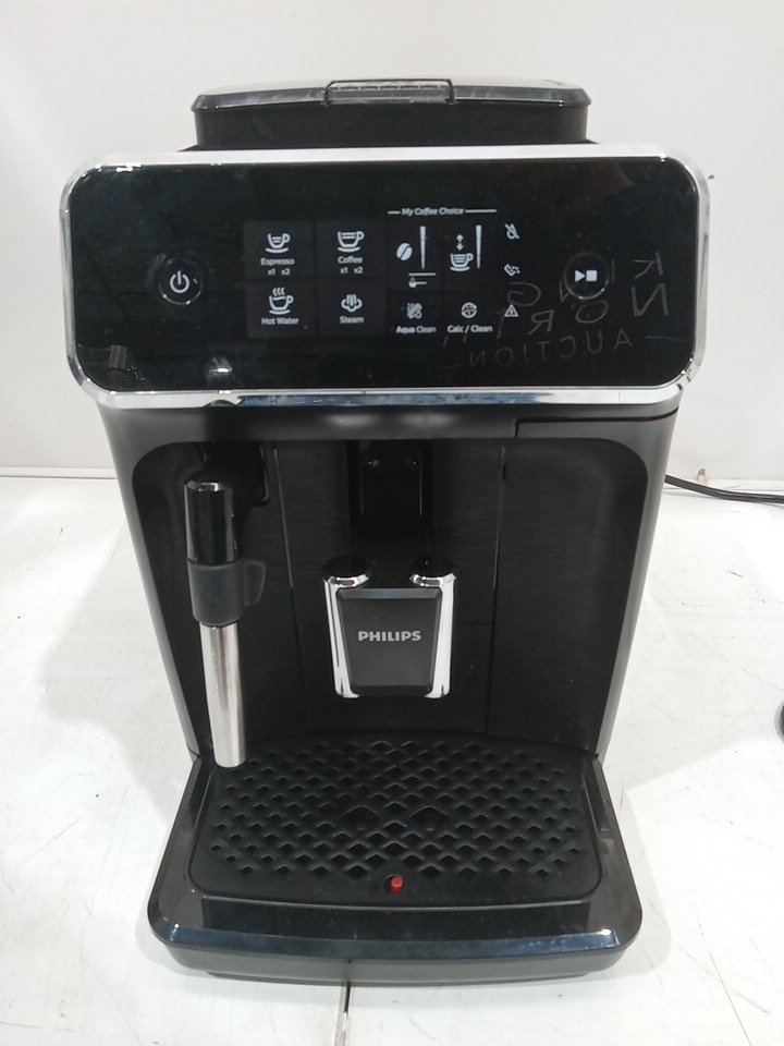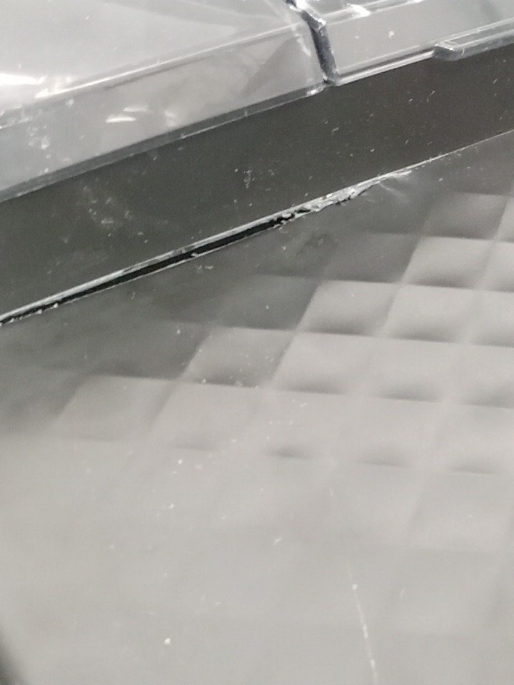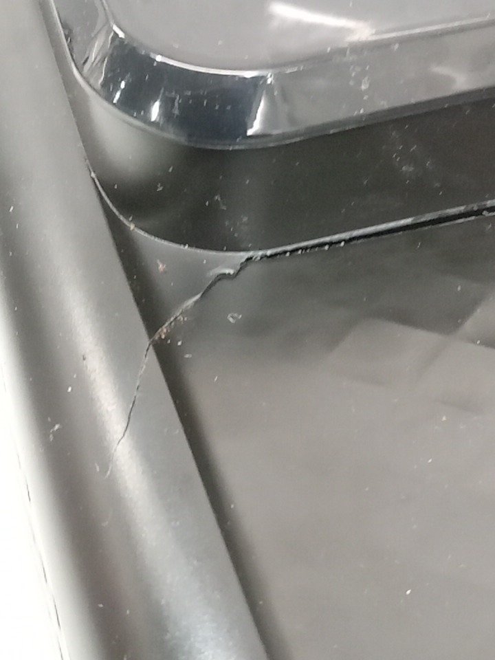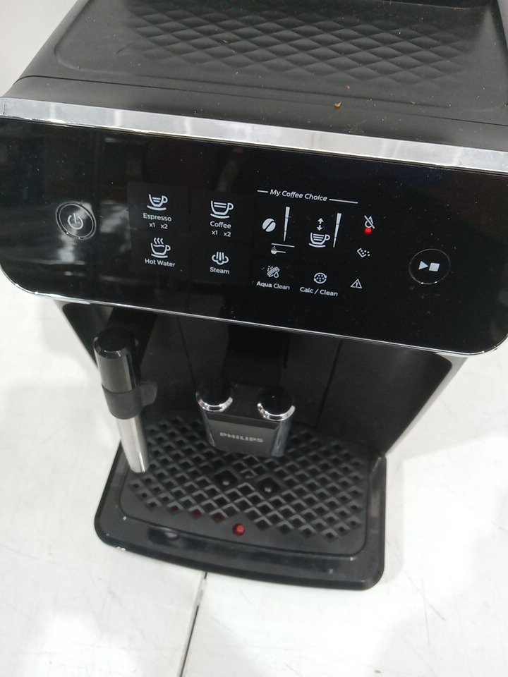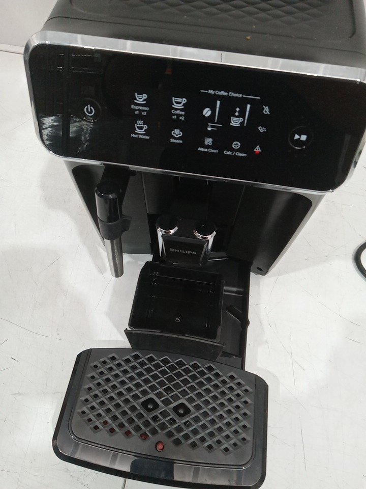 A crack is present near the grinder area on the top frame and may develop in the future. Please note that all of the cleaning accessories, the scoop are missing from the original packaging. There are minor coffee residue on the grinder and there are water stains on the water tank from previous use. There are minor scratch marks on the sides. The AQUA filter is recommended to be replaced. Tested for basic power only. (Please see photos)