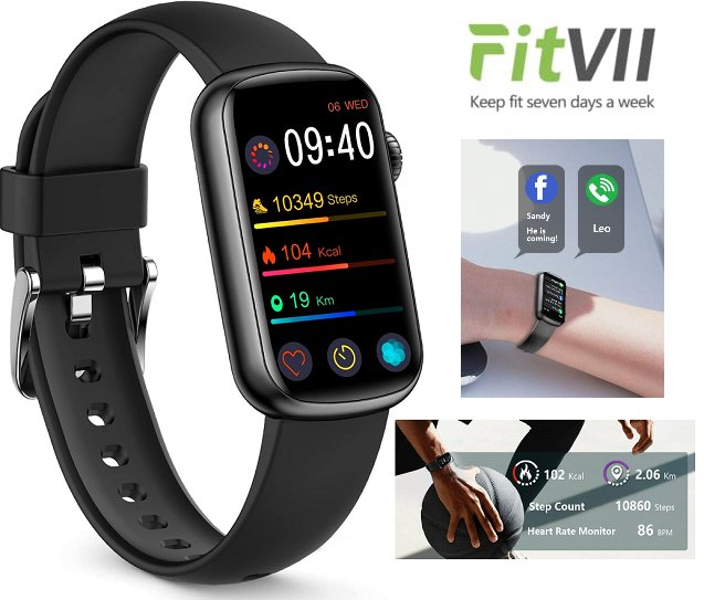 FITVII Slim Fitness Tracker with Blood Oxygen, Blood Pressure, 24/7 Heart Rate and Sleep Tracking, IP68, 1.47" - BLACK (MODEL:HM08)