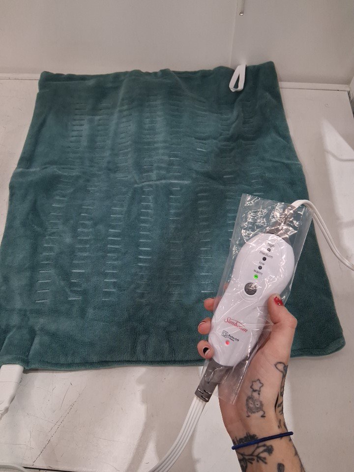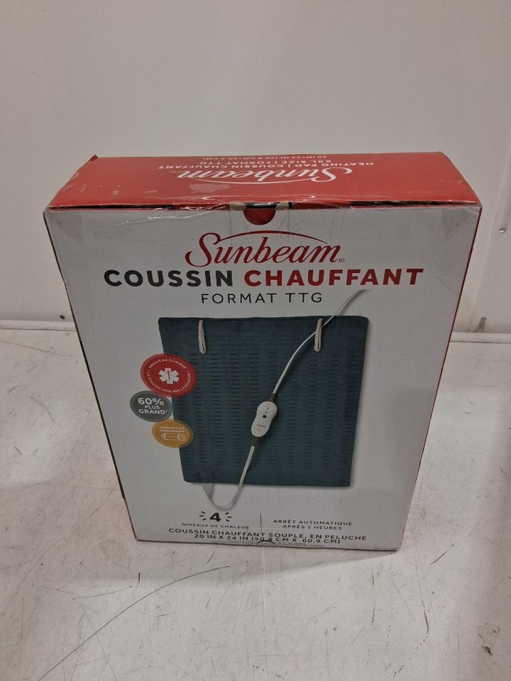 SUNBEAM HEATING PAD WITH 4 HEAT SETTINGS - 2 HOUR AUTO SHUT OFF AND REMOTE CONTROL - XXL - 20" x 24" - TEAL/blue - (MODEL: 2005-525-CN)