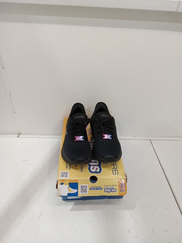 women's sketchers max cushioning elite 2.0 vanish slip ins sneakers - size 7 - black (style: 128572)