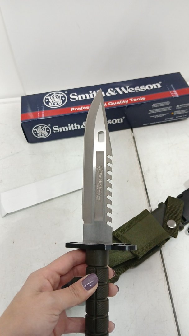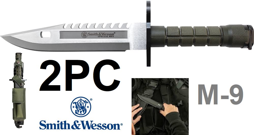 2pc SMITH & WESSON SPECIAL OPS M-9 BAYONET with holster - 8" - silver (MODEL: SW3G)
