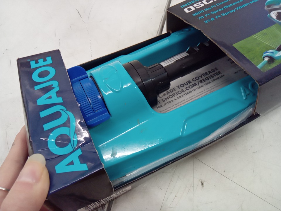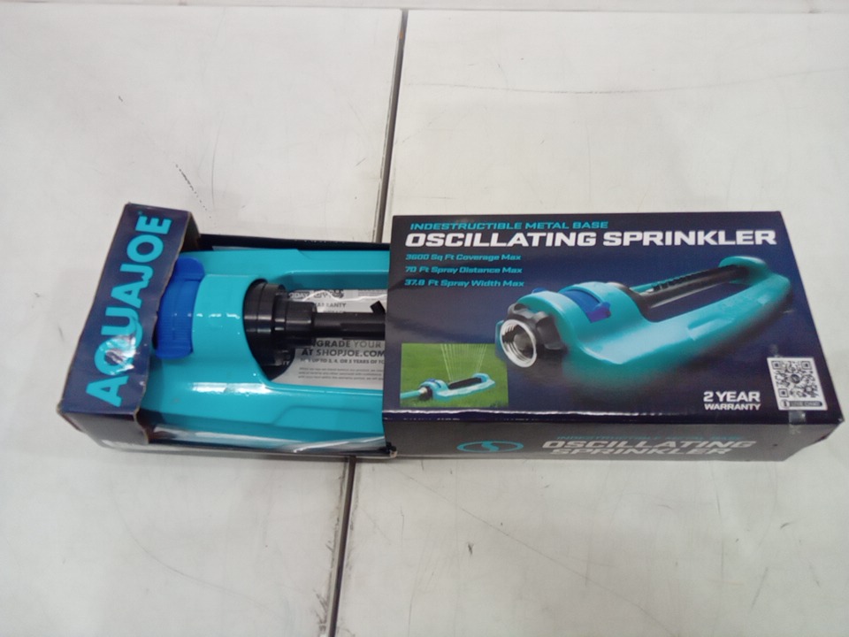 AQUAJOE INDESTRUCTIBLE METAL-BASE OSCILLATING SPRINKLER WITH ADJUSTABLE SPRAY - COVERS UP TO 3600 SQ.FT - BLUE (MODEL: SJI-OMS16)