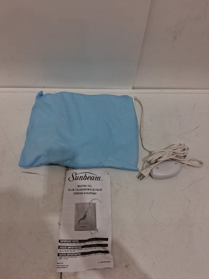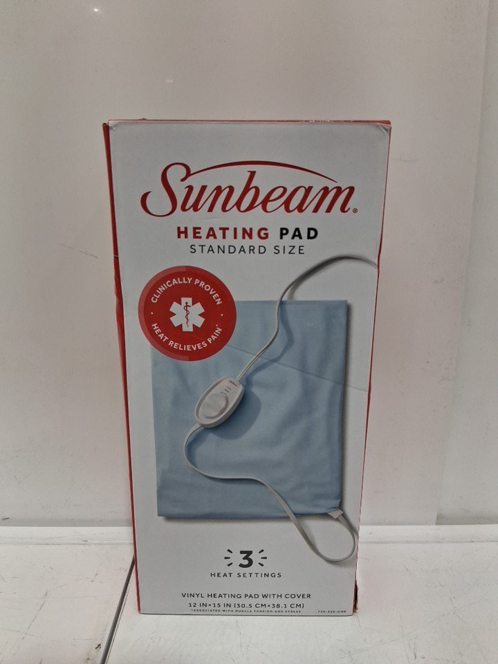 SUNBEAM CLASSIC STANDARD SIZE HEATING PAD WITH 3 HEAT SETTINGS - 12" x 15" - blue (MODEL: 756-500-CNR)