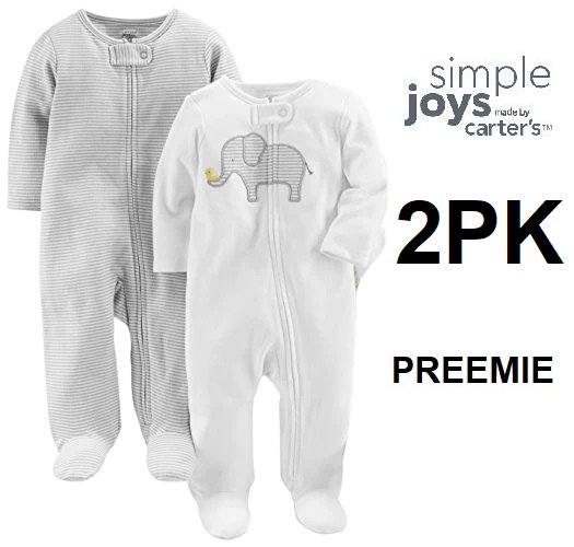 2PK BABY SIMPLE JOYS BY CARTER'S NEUTRAL SLEEP AND PLAY ONESIES - PREEMIE - 0M - ELEPHANT/STRIPE
