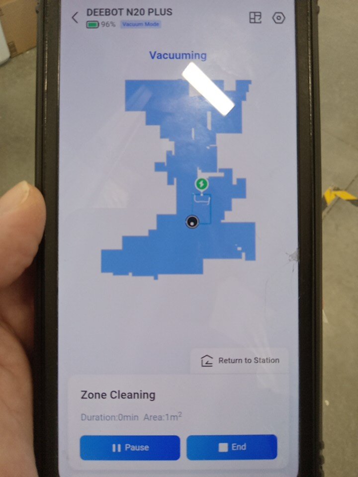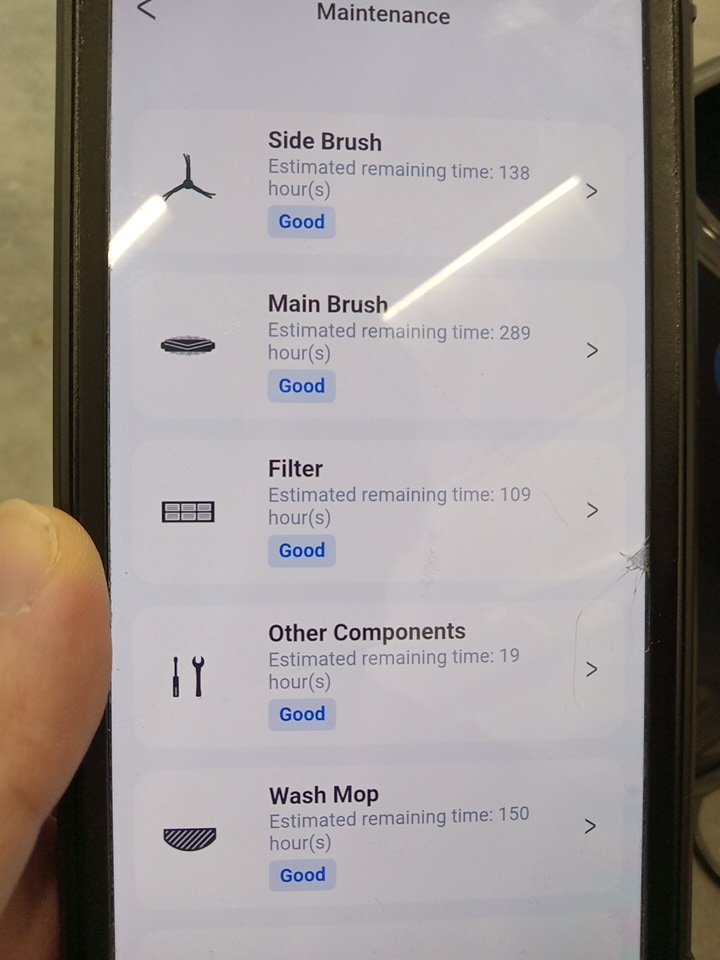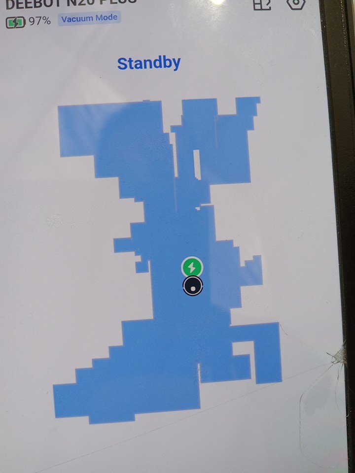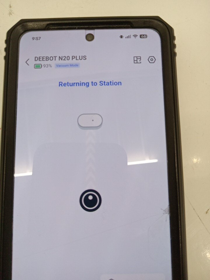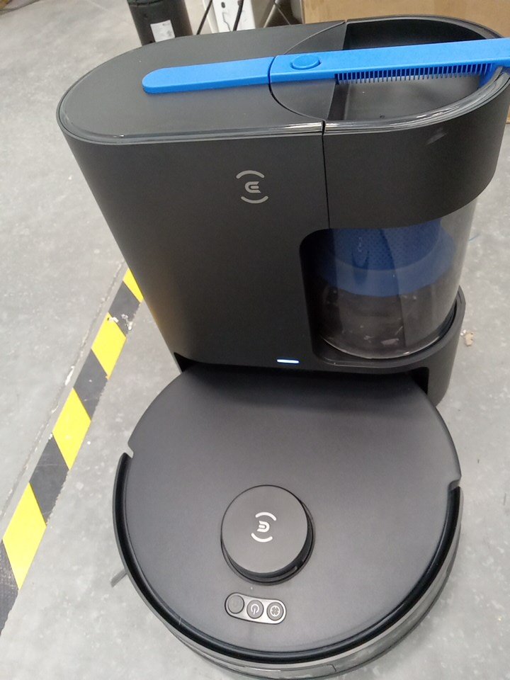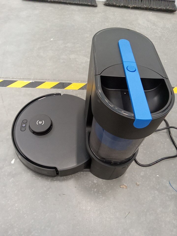 **Tested for power, app connectivity, basic functions (mapping/return home).** There is dust/debris present on parts of the item as a result from previous use. There are also some scuffs/scratches on some parts of the robot vacuum.