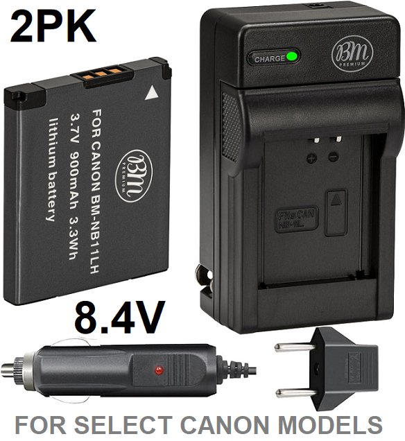 portable camera battery and battery charger for select canon models - 8.4v - black - (model: ‎NB-11L)