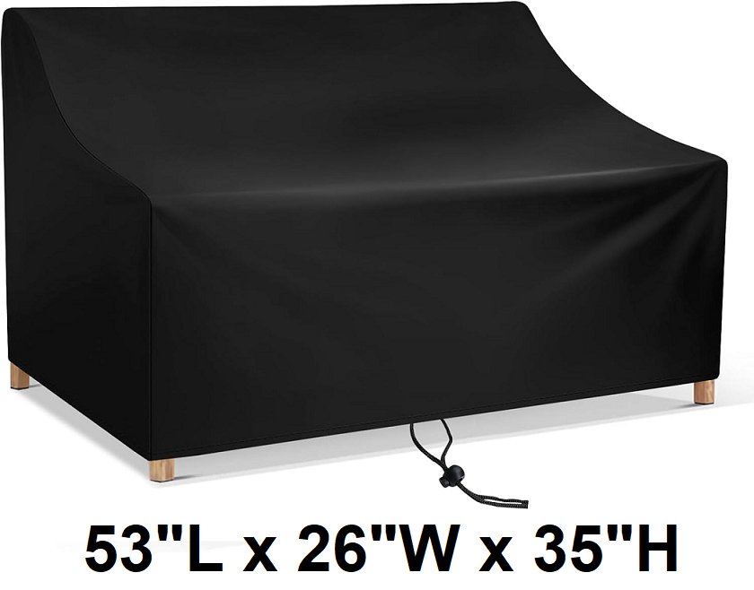 outdoor patio waterproof 2 -seater sofa cover with adjustable string - 53"l x 26"w x 35"h - black