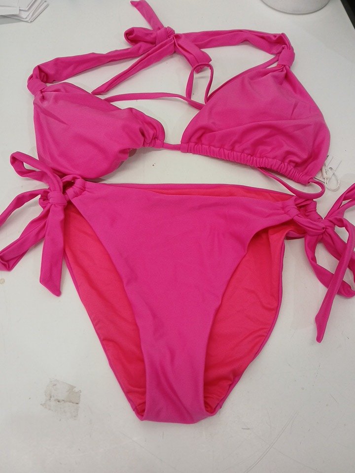 Women's Colloyes Halter String Triangle Bikini TOP AND Tie Sides Bottom Swimsuit SET - MEDIUM - HOT PINK