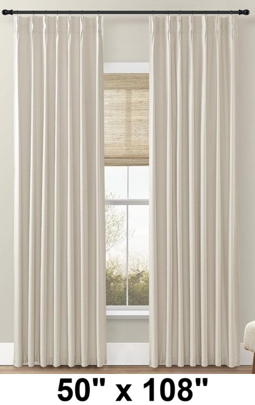 (2 PANEL) Shineland Machine Washable Faux Linen Pinch Pleated Curtains - 50" x 108" - Warm Beige