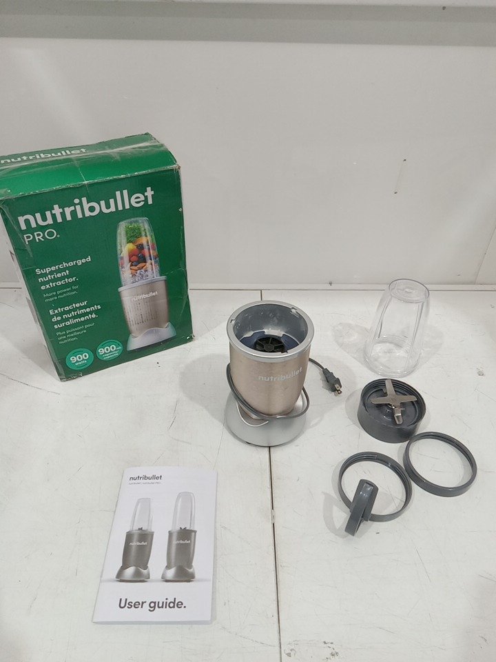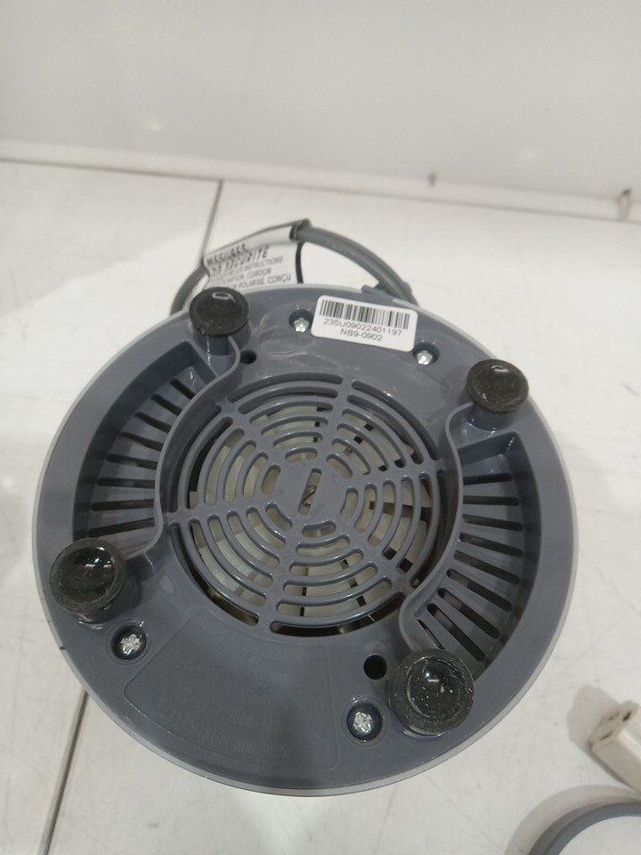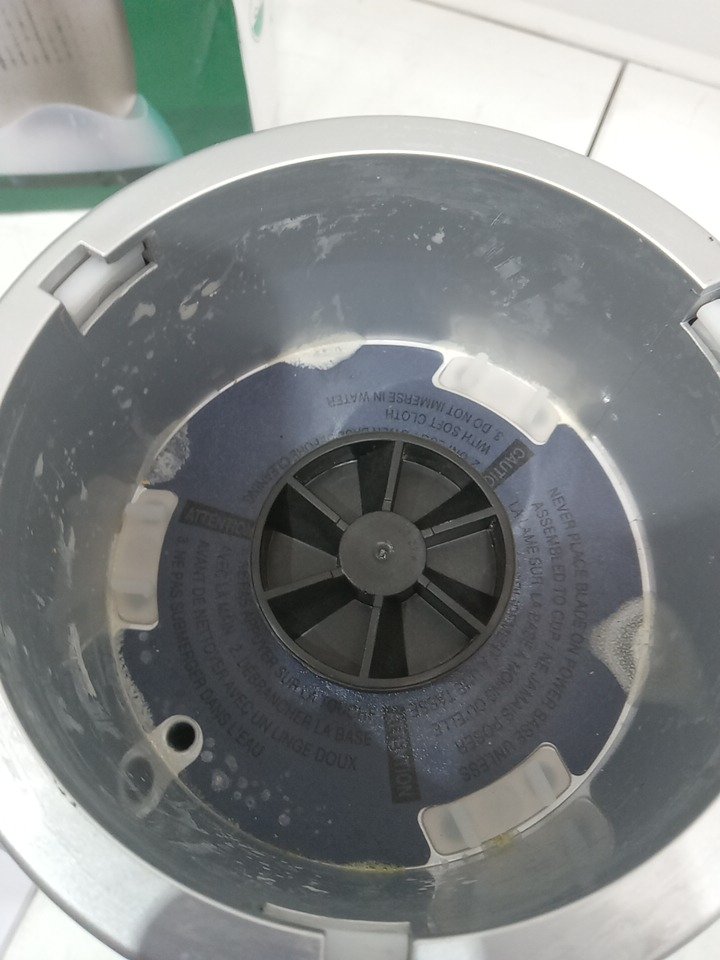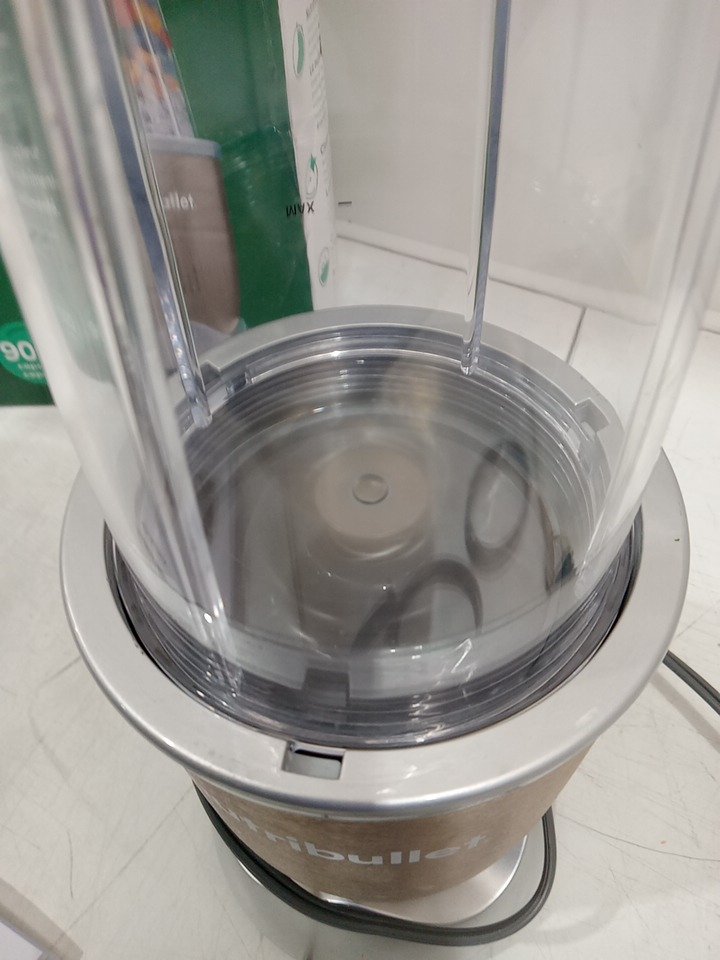 There are water stains on the cup and there are food stains on the motor unit from previous use. Ours only includes the base, blade, and mixing cup. It does not include the extra cup or lids. Tested for power and motor function only. (Please see photos)
