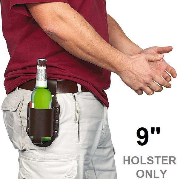 FAUX LEATHER belt beer holster - 9" x 3.5" - brown