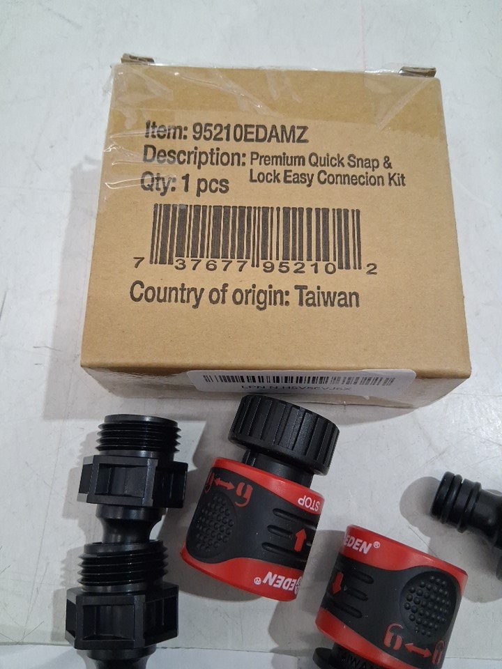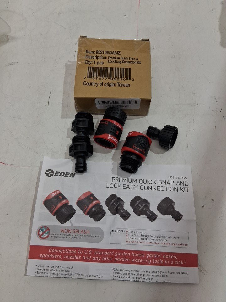 5pc eden Premium Garden Hose Fitting Quick Connect with Water Stop & Lock Feature - red/black (model: 95210edamz)