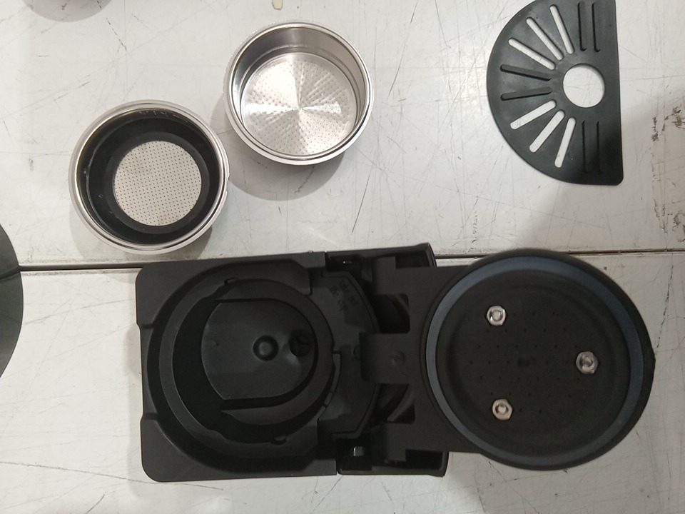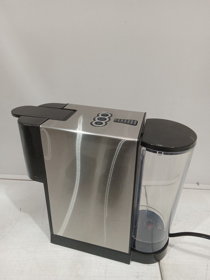 There are water stains on the water tank and there are coffee residue on the coffee cup placement from previous use. There are minor scratch marks on the sides and top. Tested for basic power only. (Please see photos)