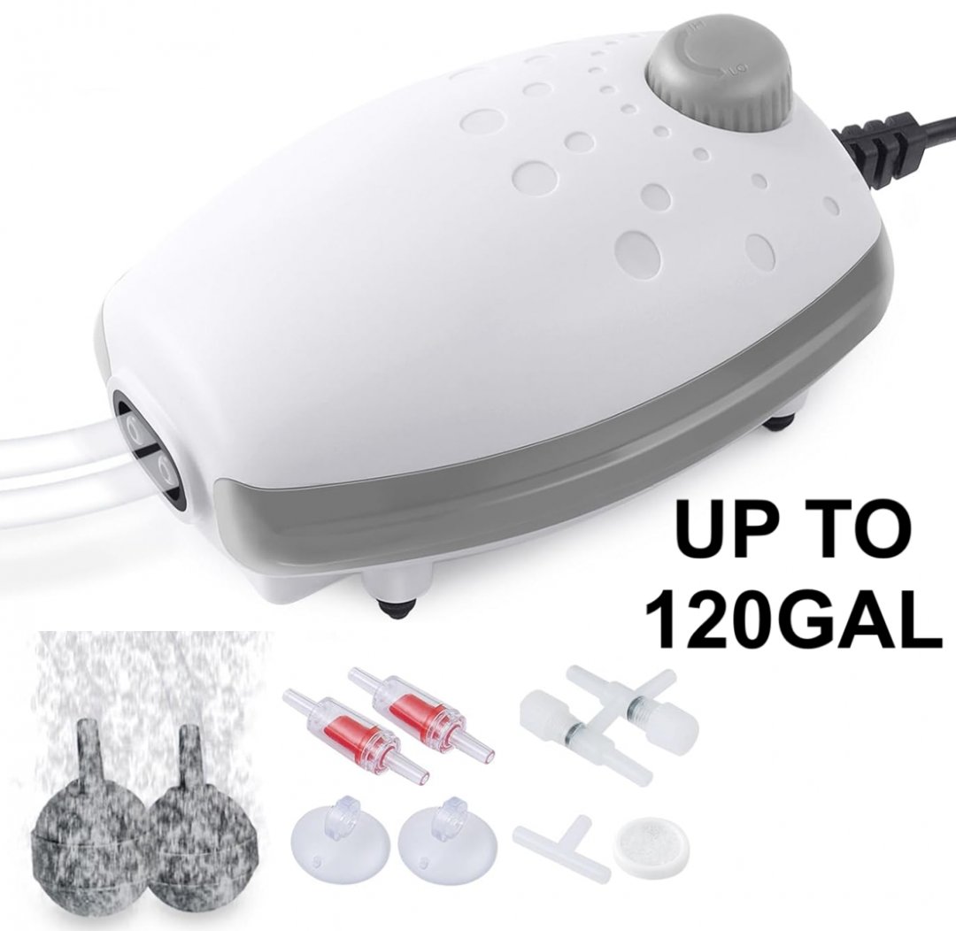Fedour Adjustable Aquarium Bubbler Air Pump - Up To 120Gal 3W - White/Grey (Model: 80GPH-Grey)