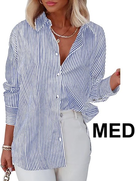 WOMEN'S hellobaby long sleeve striped button down shirt - medium - blue/white