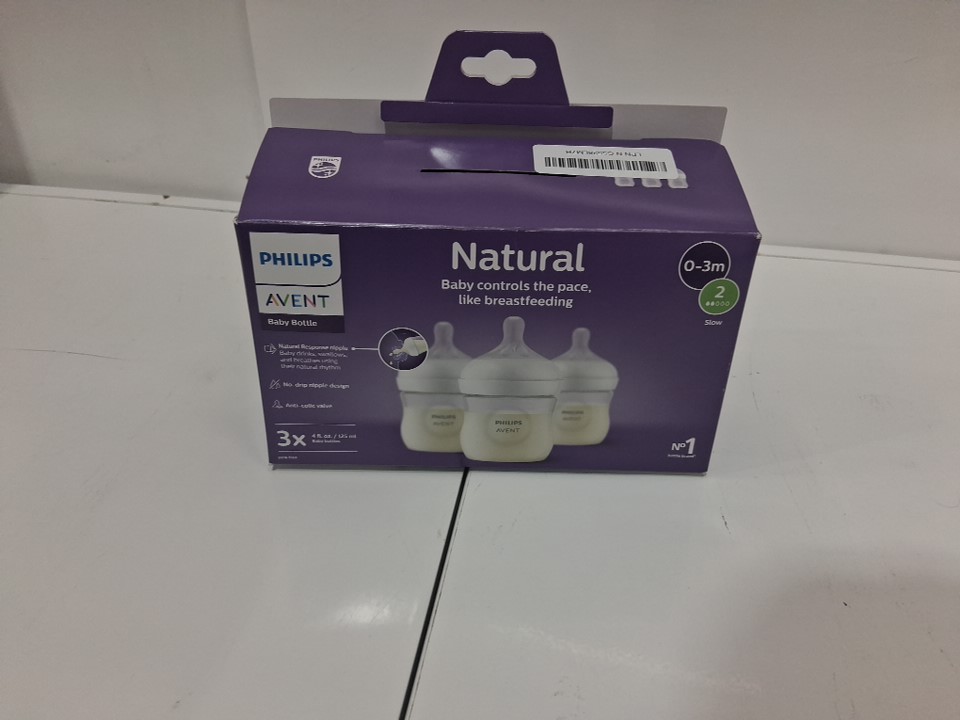 3PK PHILIPS Avent Natural Baby Bottles with Natural Response Nipples - slow Flow, Flow 2 - 4OZ - CLEAR