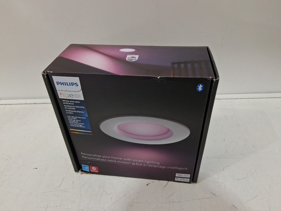 PHILIPS HUE WHITE AND rgbw COLOUR AMBIANCE SMART RETROFIT RECESSED DOWNLIGHts COMPATIBLE WITH ALEXA, GOOGLE ASSISTANT, BLUETOOTH, ZIGBEE - 5/6" - 1100Lm, 2000k-6500k - WHITE - (model: 9290031346)
