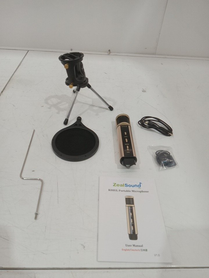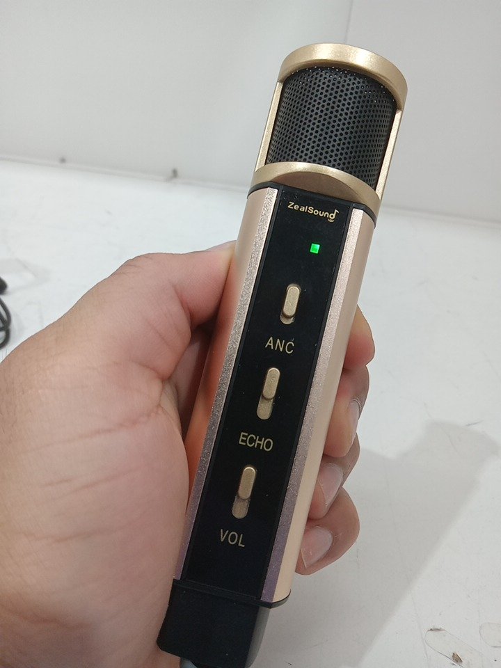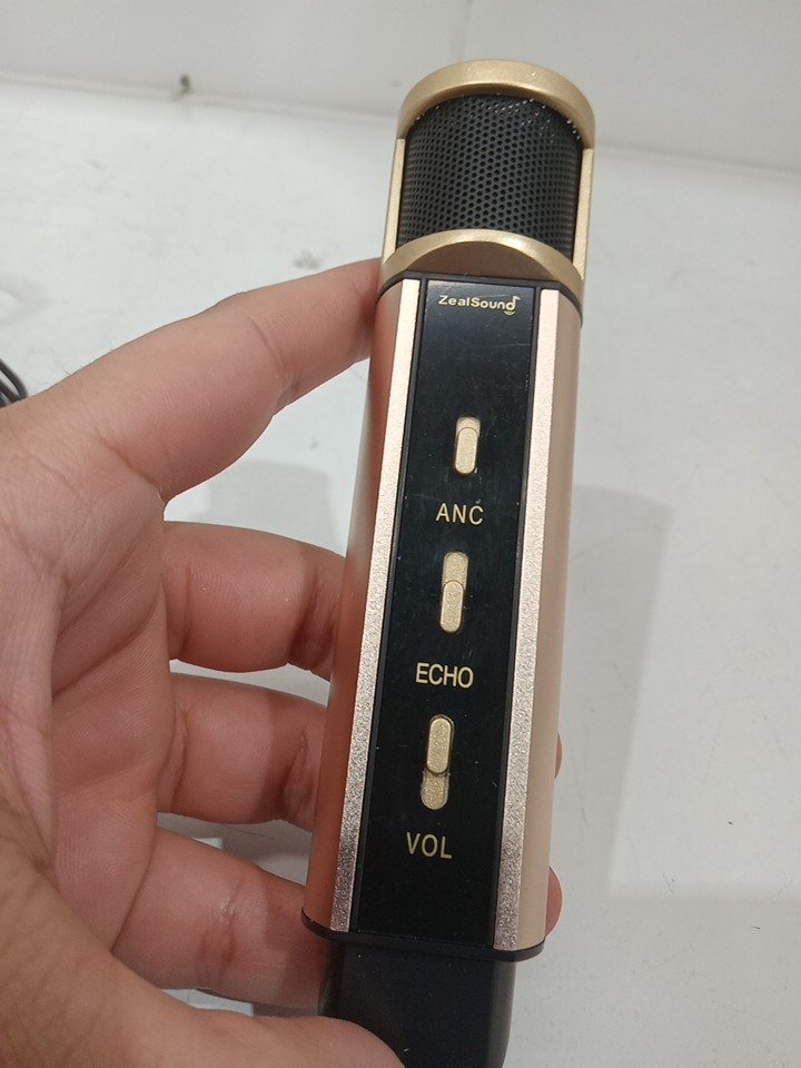 There are minor scratch marks on the microphone and there are dust residue from previous use. Tested for power and functionality. (Please see photos)