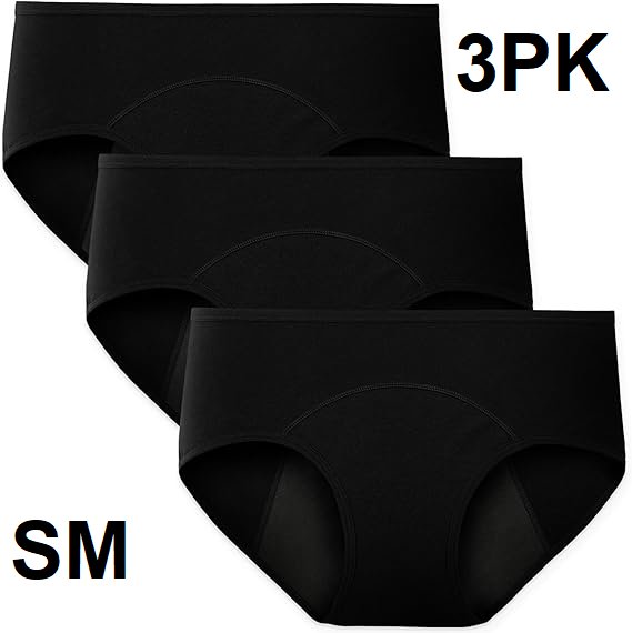 3pk women's innersy Menstrual Period Panties High Waist Cotton Underwear - SMALL - BLACK