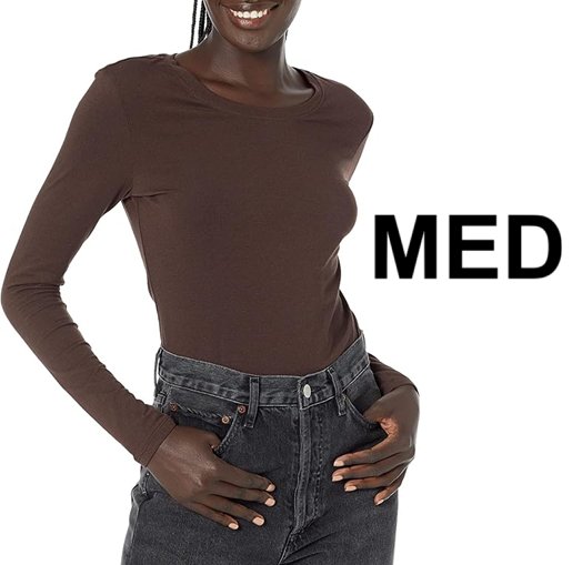 WOMEN'S Amazon Essentials Classic-Fit Long-Sleeve Crewneck T-Shirt - MEDDIUM - ESPRESSO/BROWN (STYLE:WAE45094FL18)