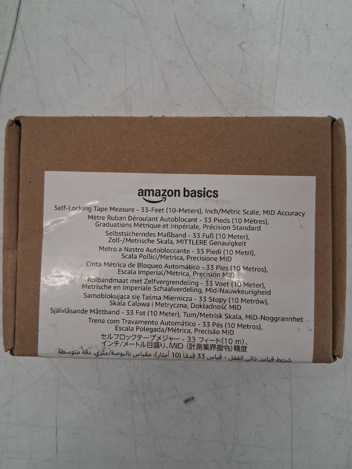 AmazonBasics Self-Locking Tape Measure, 33ft, Inch/Metric Scale, Yellow/Black