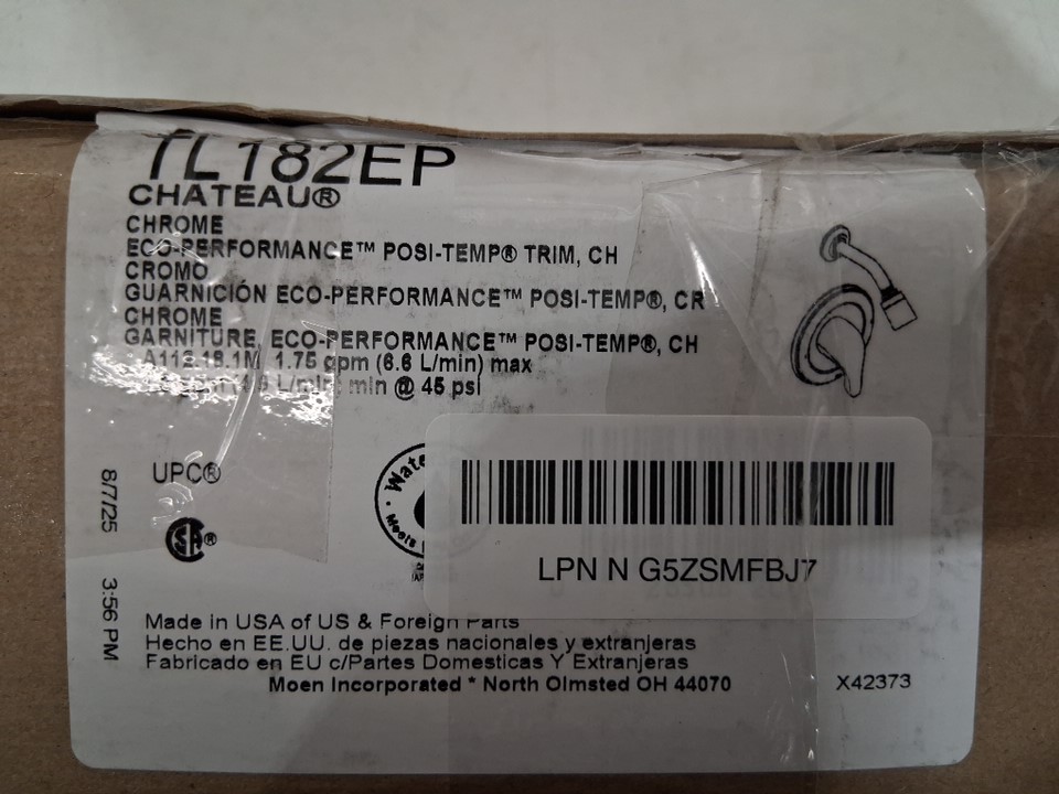 MOEN CHATEAU POSI-TEMP SINGLE-HANDLE SHOWER TRIM KIT - POLISHED CHROME (MODEL: TL182EP)