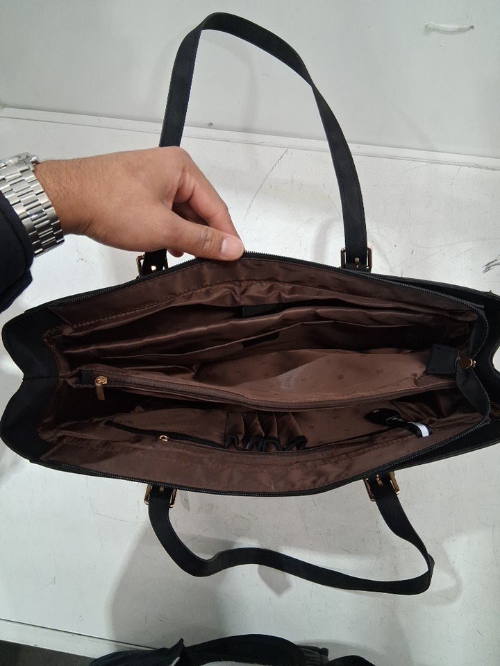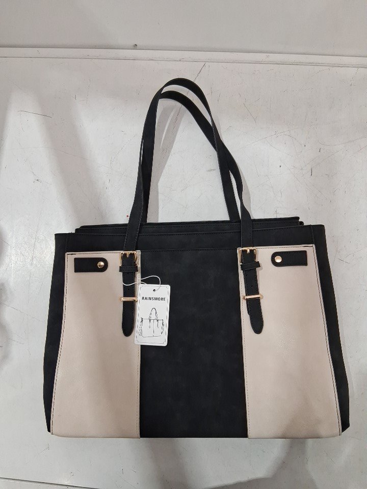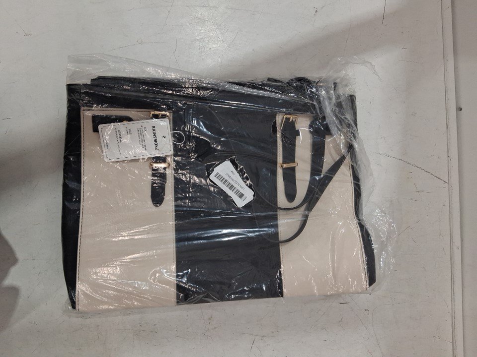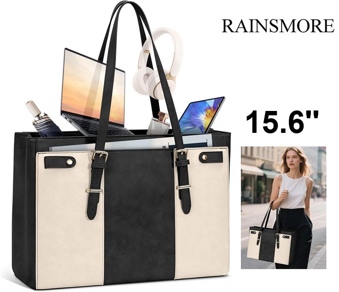 women's rainsmore professional waterproof leather work laptop bag - 15.6'' - black/beige white (model: YZH-RM10013)