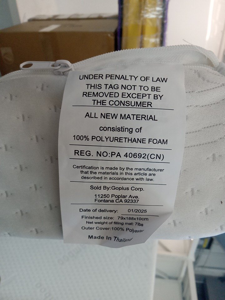 bamboo foam cot mattress with removable cover - 73" x 32" x 4" - white