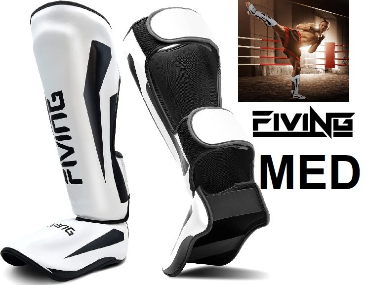FIVING MMA MARTIAL ARTS PADDED ADJUSTABLE SHIN GUARDS - medium - white/black