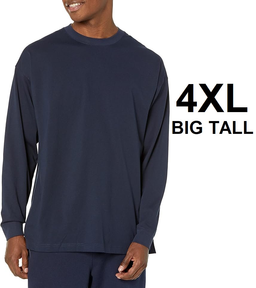 MENS AMAZON ESSENTIALS Oversized-Fit Long-Sleeve T-Shirt - 4XL BIG AND TALL - navy - (STYLE: AEMBT20250F23)
