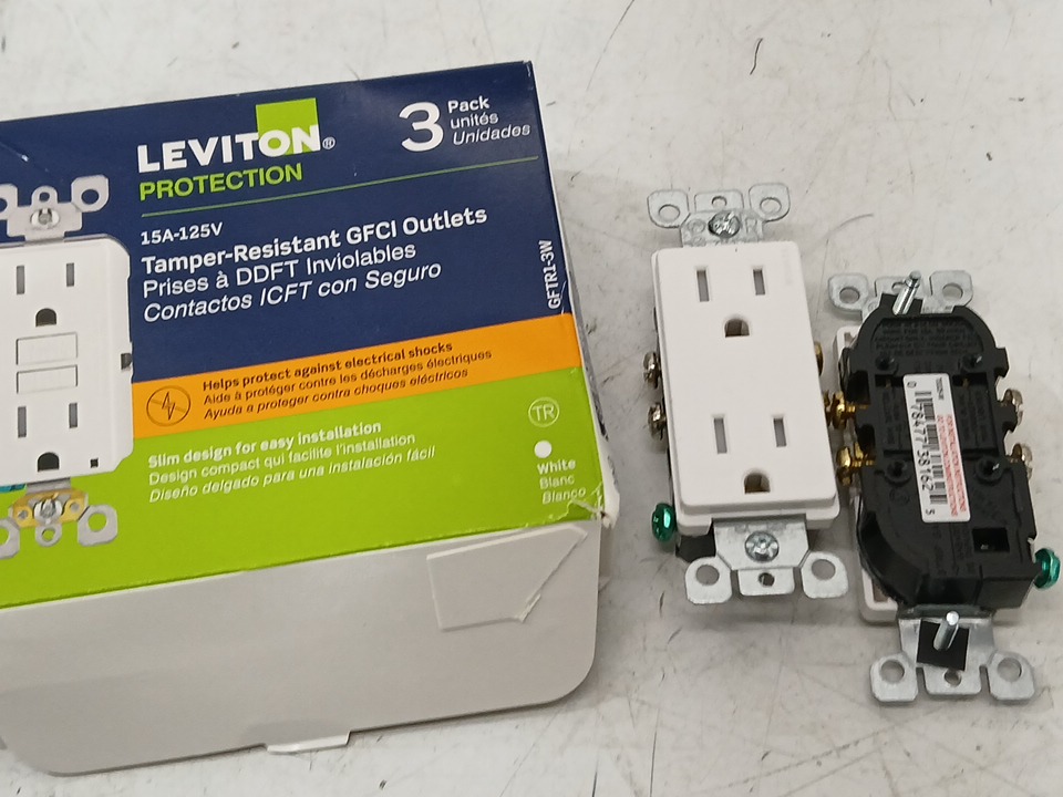 2PK LEVITON TAMPER-resistant self test gfci outlets with led indicator - 4.2" x 10.6" - 15amp - white (model: gftr1-3w)