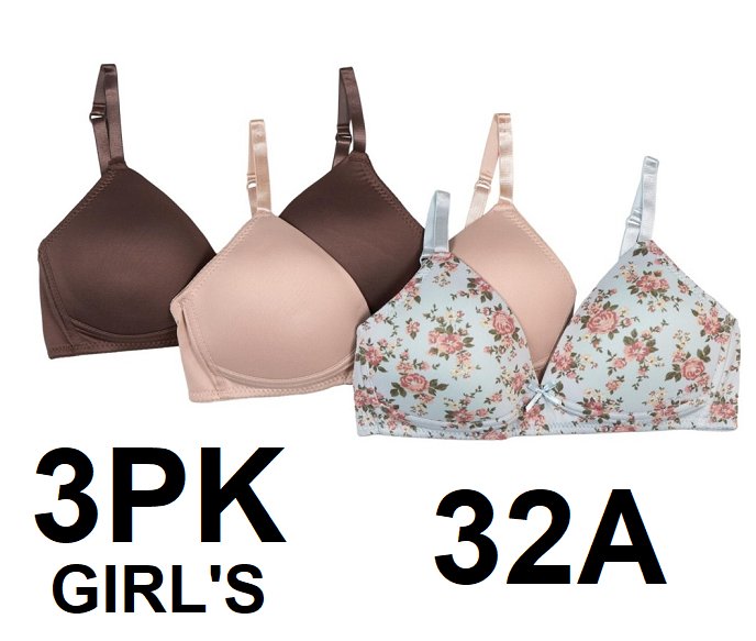 3pk Girls Tahari Molded Wireless Training Bra - 32a - Blue Floral