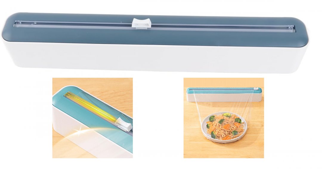 Zerodis ADJUSTABLE Dispenser for Plastic Wrap and aluminum foil with Cutter - white/blue