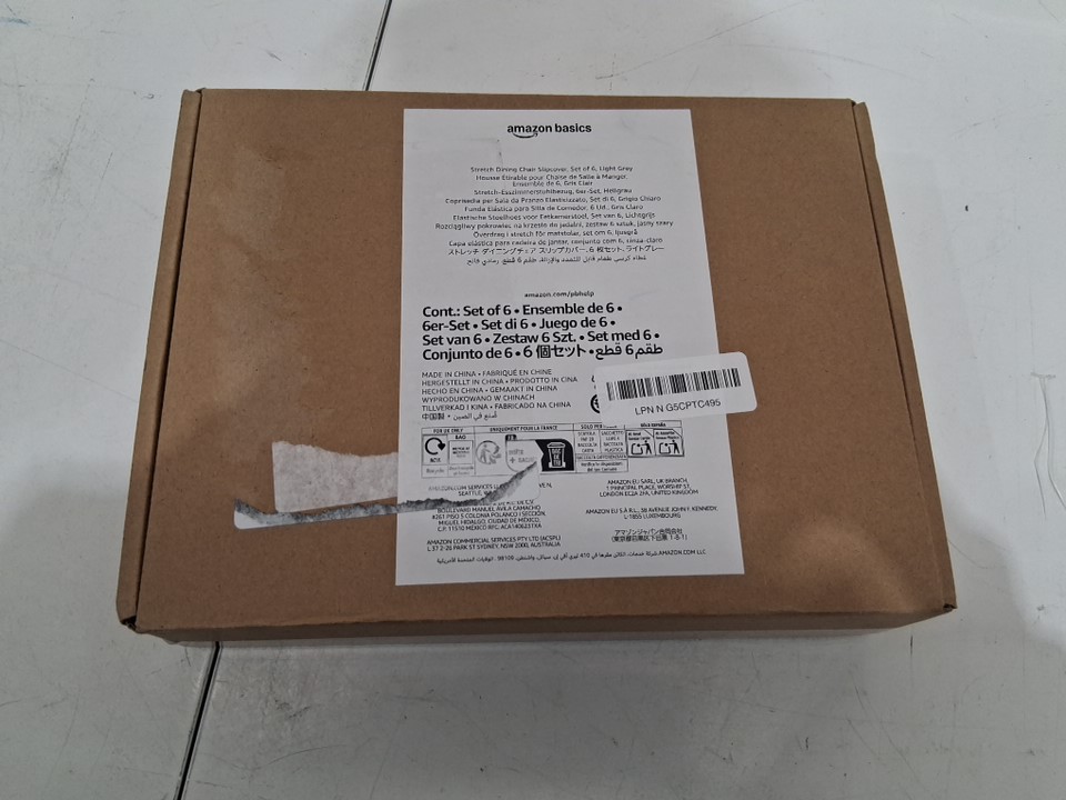 6PK AMAZON BASICS Stretch Dining Chair Slipcovers - LIGHT GREY