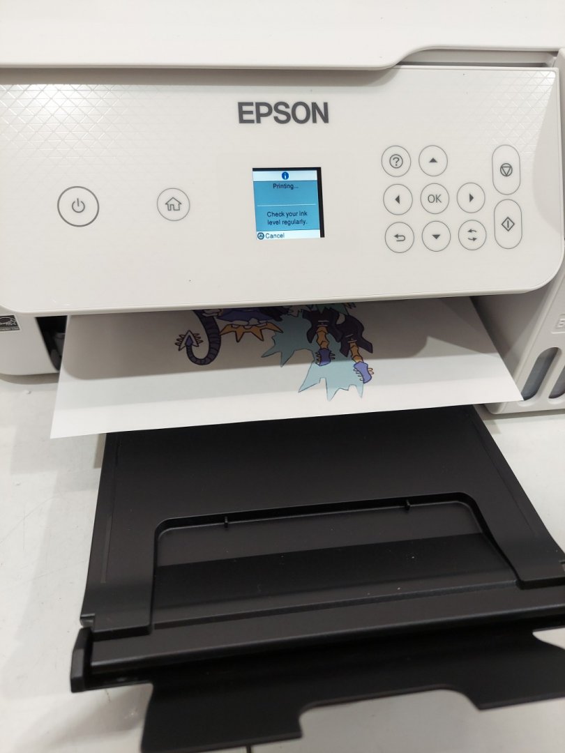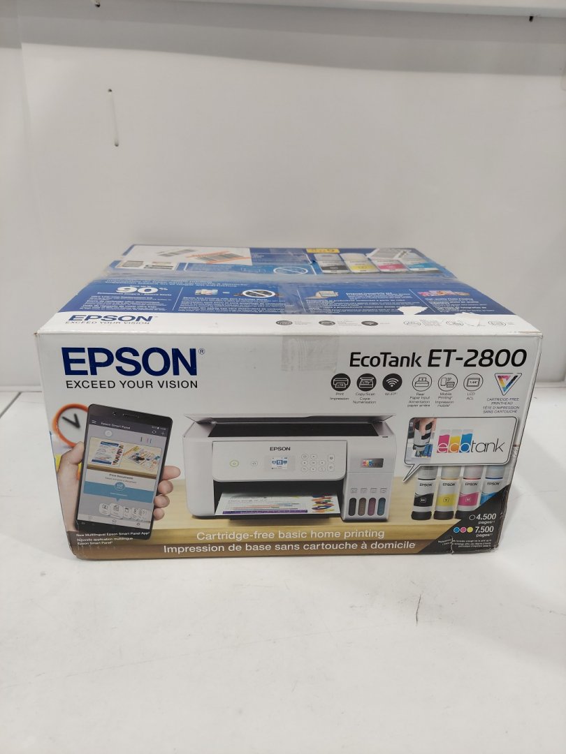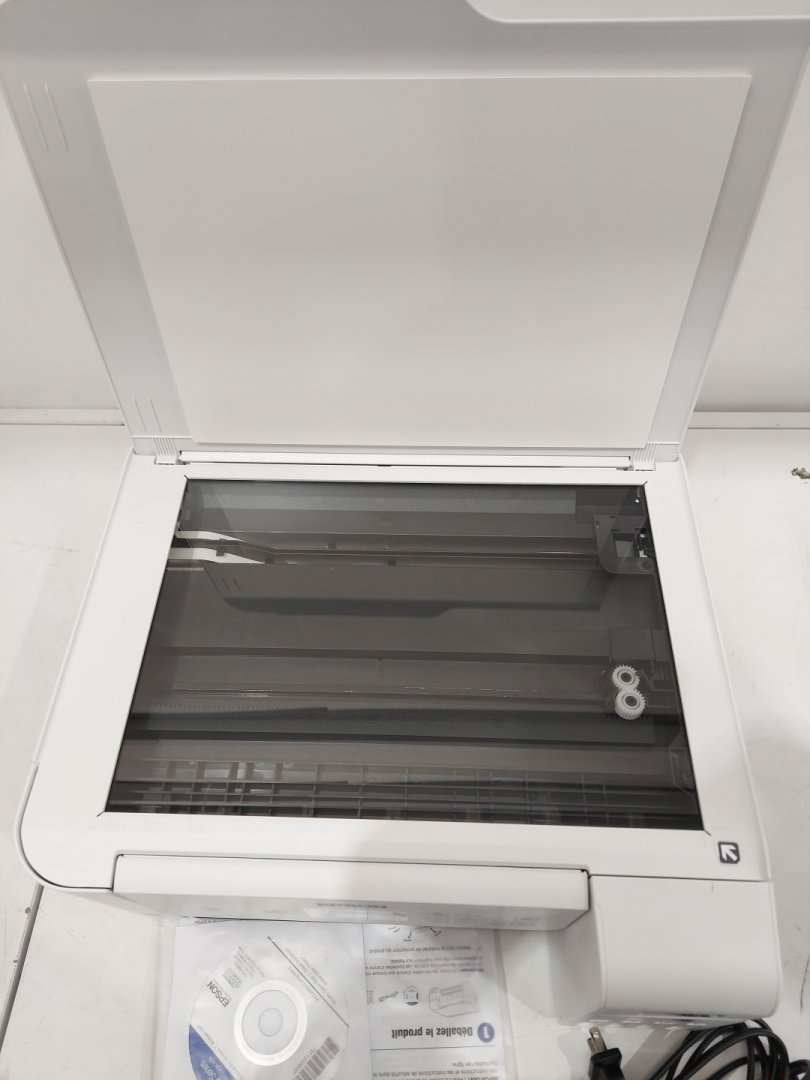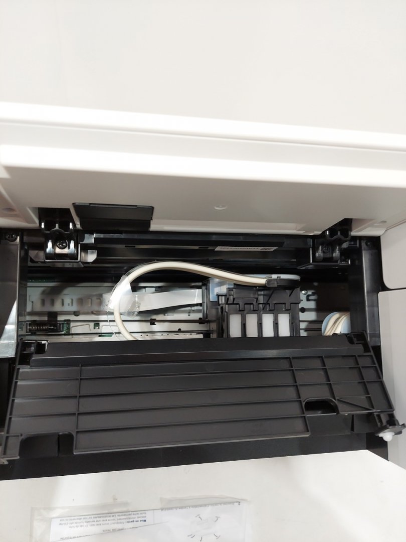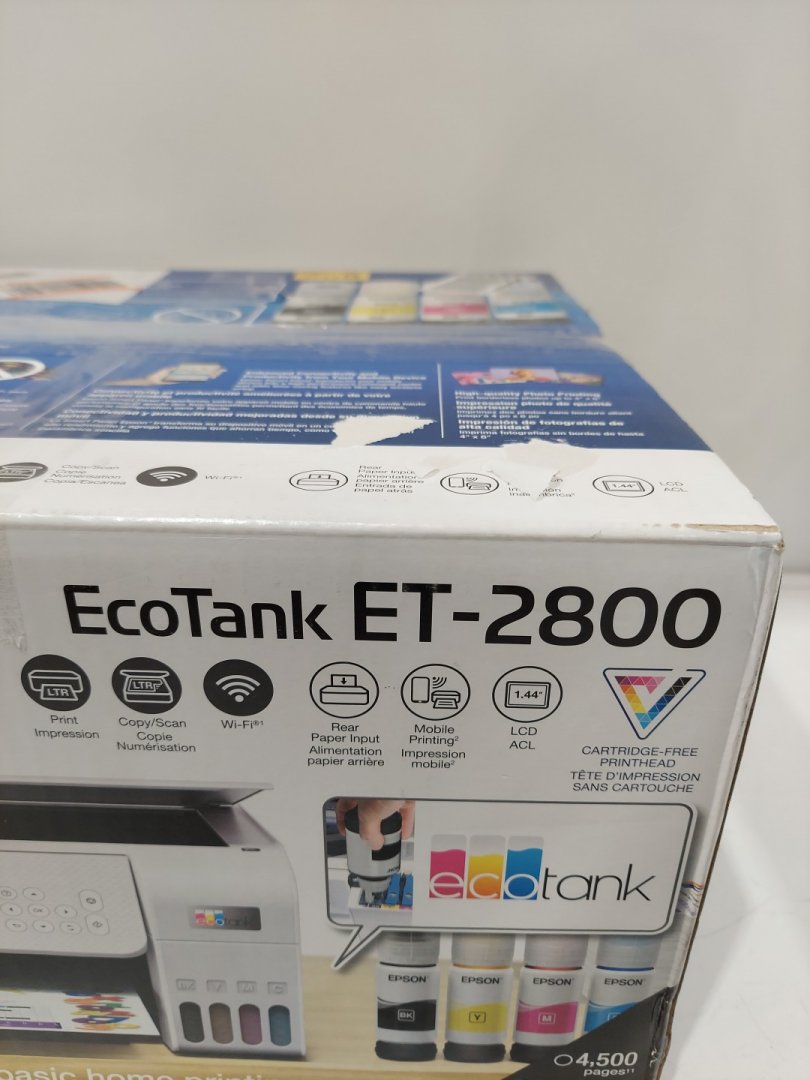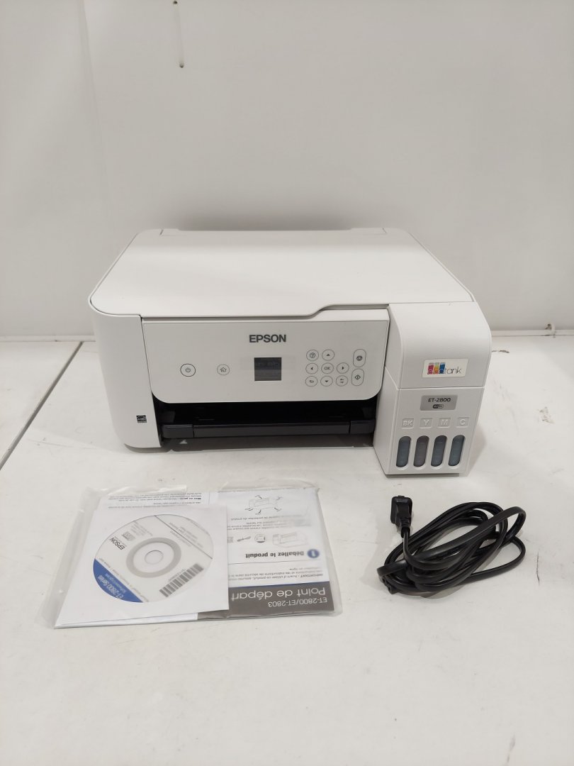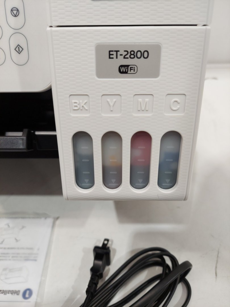 Item arrived with ink already in the tanks and with some of the starer ink used but this is meant to be refilled over time and this does not effect use, though new ink will likely be required soon after setup. Tested for power and function. see photos.