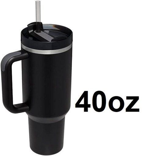Stainless Steel TUMBLER CUP and straw - 40oz - black