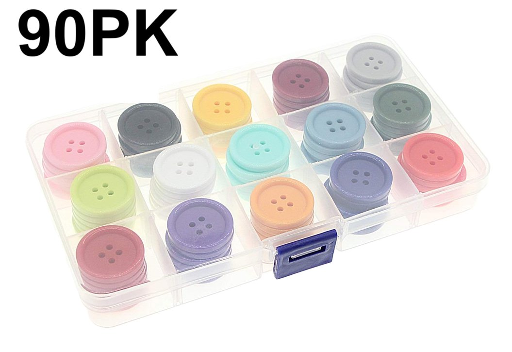 90PK SHUNLI Sewing Resin Buttons - 15 colors - 1" Buttons