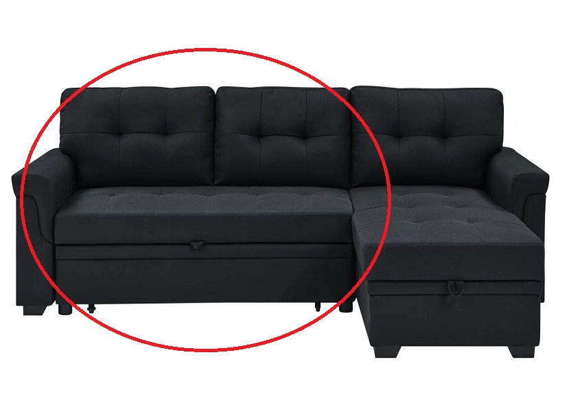 the sofa is just the back and the back cushions, there is no arm or backrest, and there is no chaise. please see photos